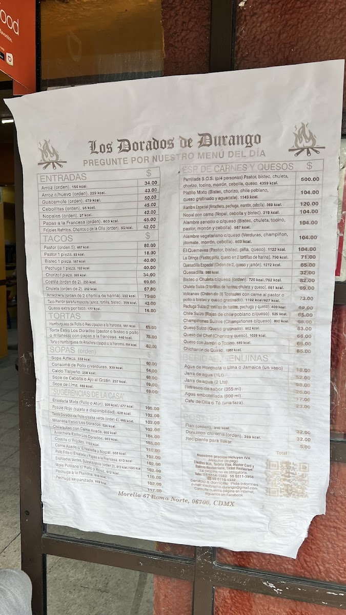 Introducing the menu of Los Dorados de Durango, a culinary gem nestled in the heart of Roma Norte, Mexico City. Here, traditional flavors reign supreme, offering a genuine taste of local cuisine that resonates with both locals and tourists alike. Customers rave about the mouthwatering tacos, rich soups, and the irresistible "Flantastic" flan that leaves a delightful impression.